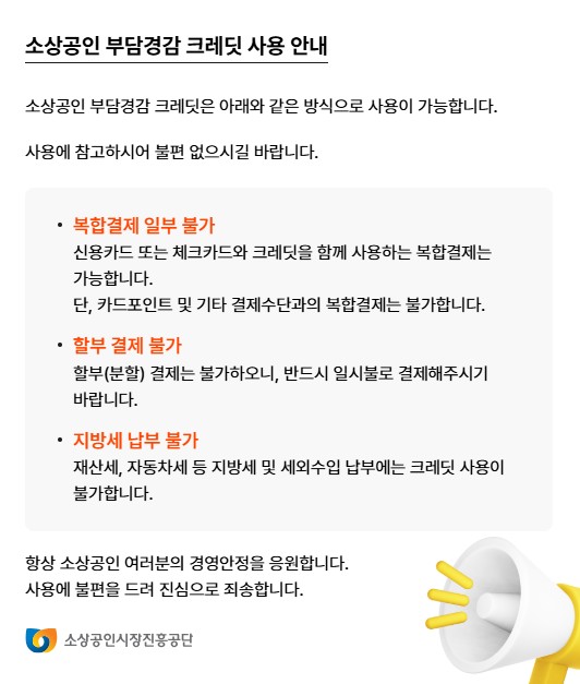 - 2025년 중소벤처기업부와 소상공인시장진흥공단이 시행하는 소상공인 부담경감 크레딧은