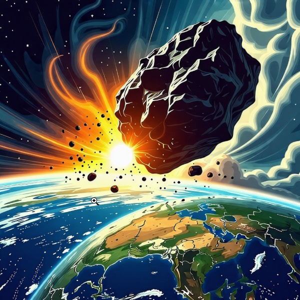 소행성은 우주 공간에서 떠도는 암석 덩어리로, 그 크기는 수 미터에서 수 킬로미터에 이릅니다. 소행성이 지구와 교차하는 궤도를 따라 이동할 때, 중력의 영향을 받아 지구로 끌려올 가능성이 있는데 이때에 소행성의 궤도 변화는 주로 중력적 상호작용과 소행성 자체의 회전에 의해 발생합니다. 만약 소행성이 지구에 충돌한다면, 그 충격 에너지는 핵폭탄을 능가할 수 있으며, 이는 기후 변화와 생태계 붕괴로 이어질 수 도 있습니다.